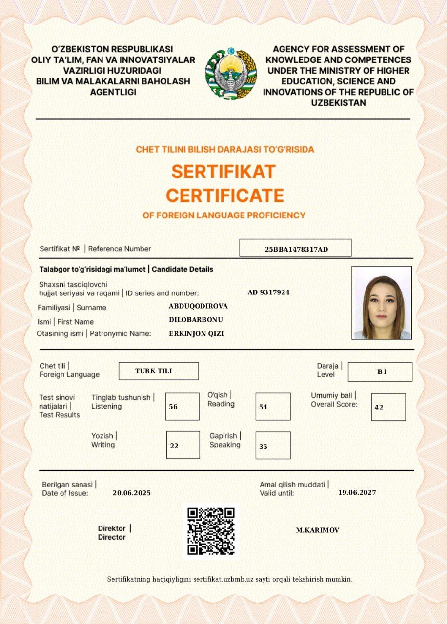 Loyiha raxbari- Abduqodirova Dilobarbonu Erkinjon qizi