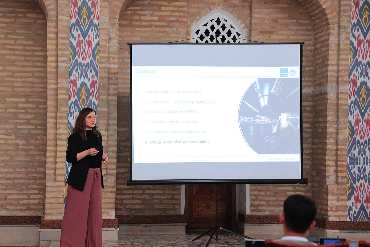 2023-yil 14-21-may kunlarida Xiva shahrida Volkswagen fondi tomonidan moliyalashtirilgan, O‘zbekiston Fizika Jamiyati, Turin politexnika universiteti hamkorligida tashkil qilingan “Future prospects of perovskite based solar cells: Low carbon energy conversion through advanced functional materials” (Perovskit asosidagi quyosh batareyalarining kelajak istiqbollari; ilg'or funktsional materiallar orqali past uglerodli energiya konversiyasi) bo'yicha yozgi maktabdan lavhalar: