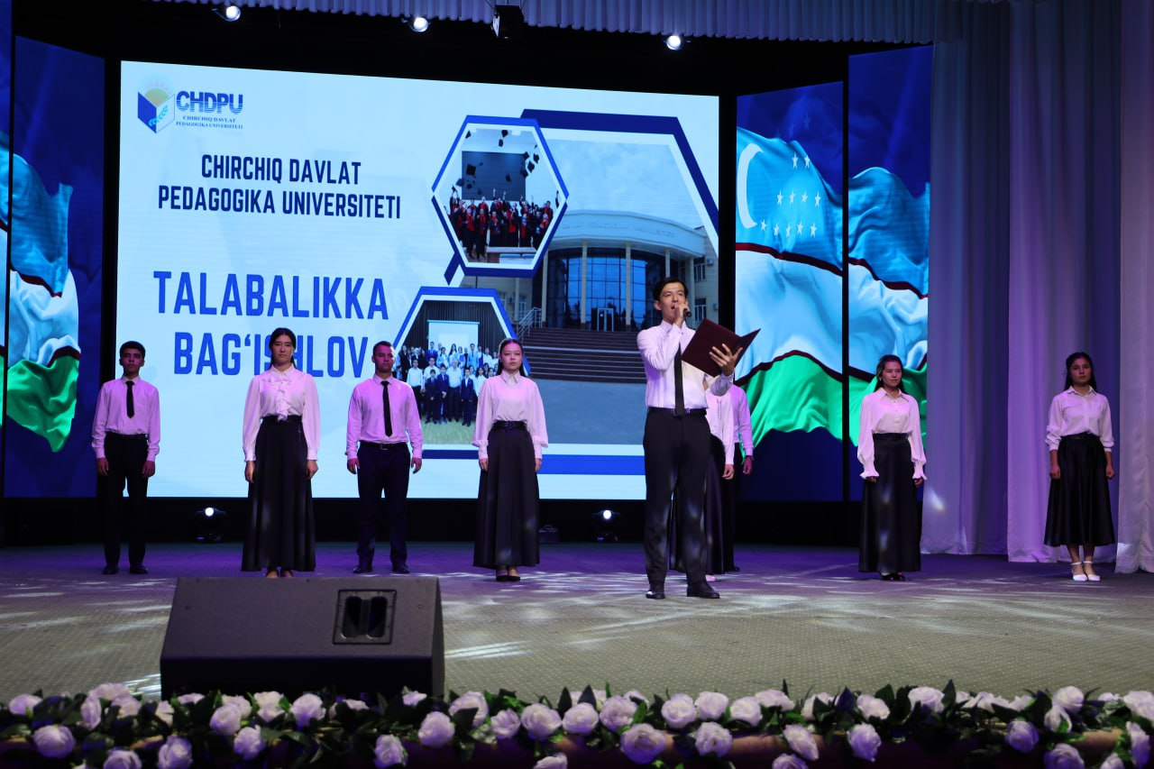 ✍️ Chirchiq davlat pedagogika universitetida an’anaviy “Talabalikka bag‘ishlov” tadbiri katta ko‘tarinkilik bilan o‘tkazildi. Tadbir davomida 1-kursga qabul qilingan talabalar hayotlaridagi eng muhim daqiqalardan birini boshdan kechirdilar — ular Talabalik qasamyodini qabul qilib, ilm-fan va ma’rifat yo‘lida sobitqadam bo‘lishlarini tantanali ravishda va’da qildilar.
