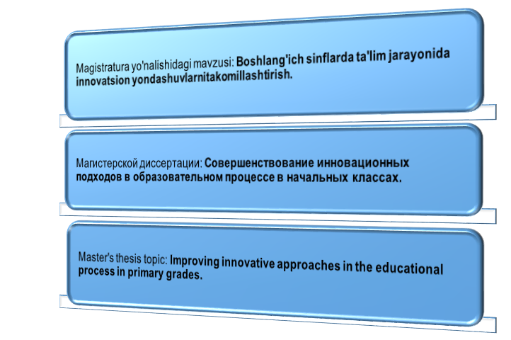 In 2023-2025, I graduated from the Gulistyn State Pedagogical Institute, majoring in "Theory and Methodology of Education (Primary Education)"
