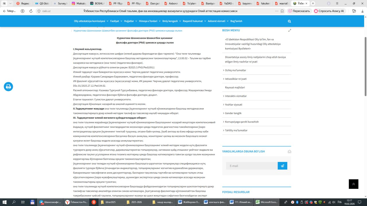 - Zamonaviy pedagogik muammolar bo‘yicha dissertatsiyalarni qo‘llab-quvvatlash;