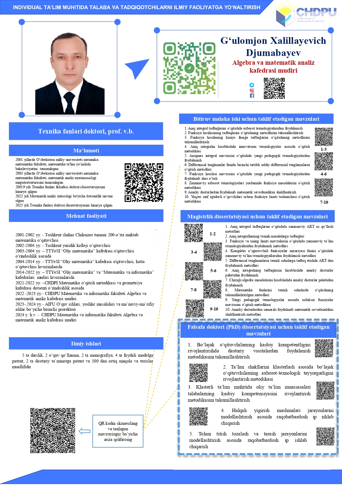 2024 y. h.v. - CHDPU Matemetika va informatika fakulteti Algebra va matematik analiz kafedrasi mudiri