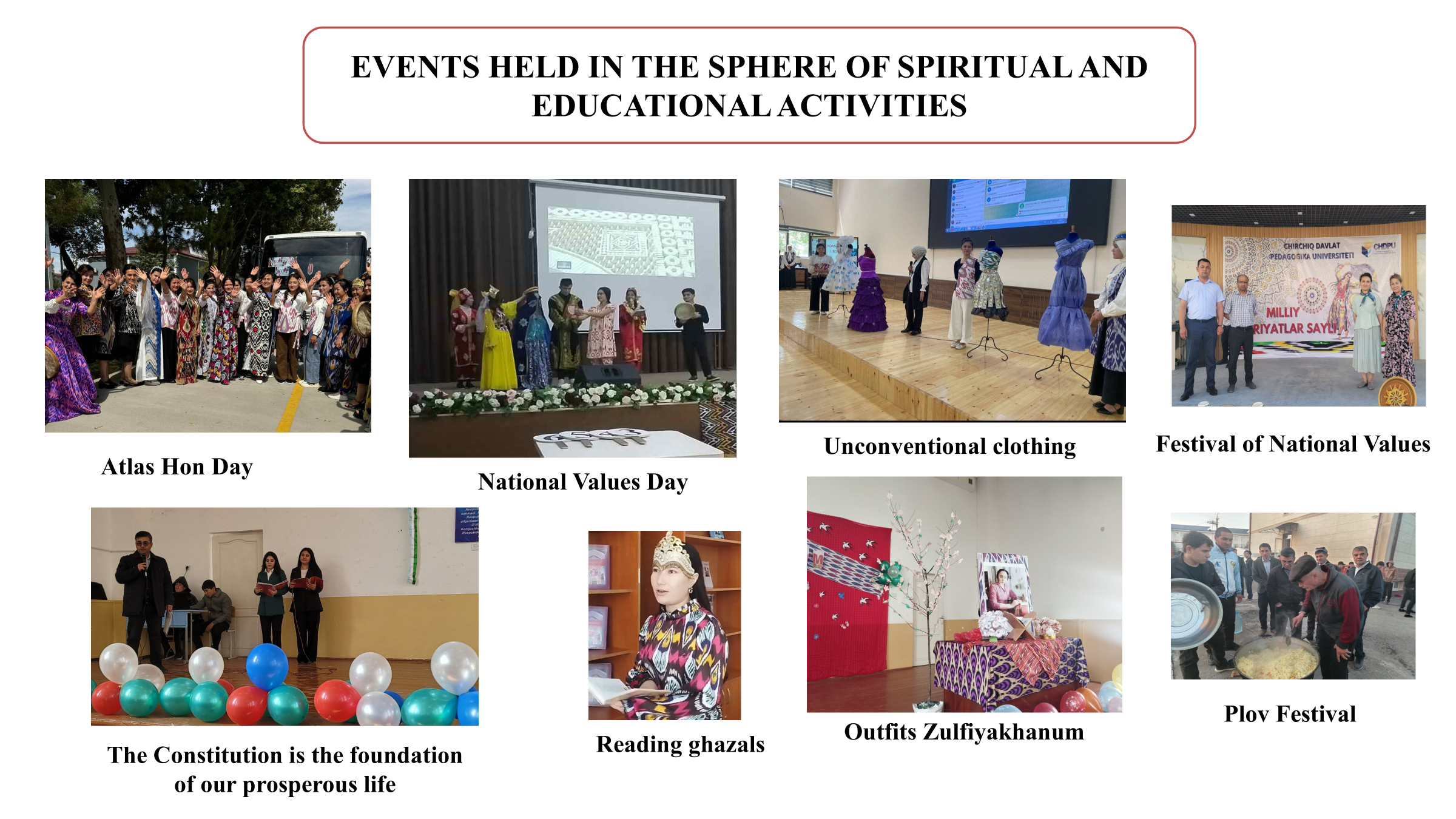 - Labor Education and Values: Improving technologies for utilizing national folk traditions in students' labor education to enhance their knowledge, skills, and competencies in folk craftsmanship, and promoting universal values, are important aspects of the department's activities. D.B.Luxmanov conducts extensive research in the direction of national values and moral education based on folk pedagogy.