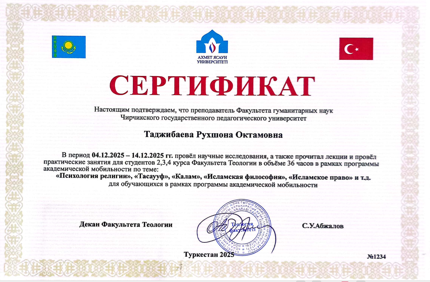2024 - Teacher of the Department of "Interfaculty Social Sciences", Faculty of "Humanities", Chirchik State Pedagogical University