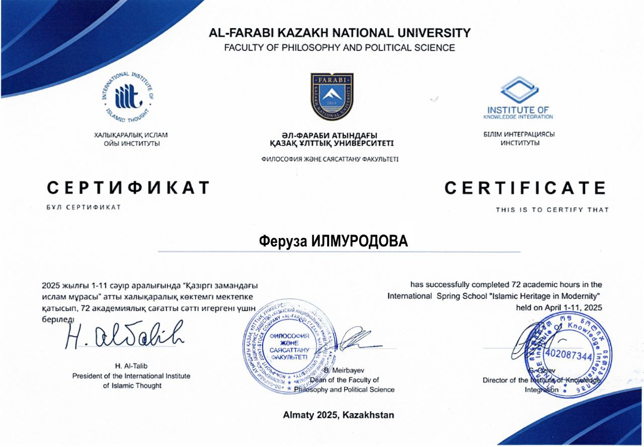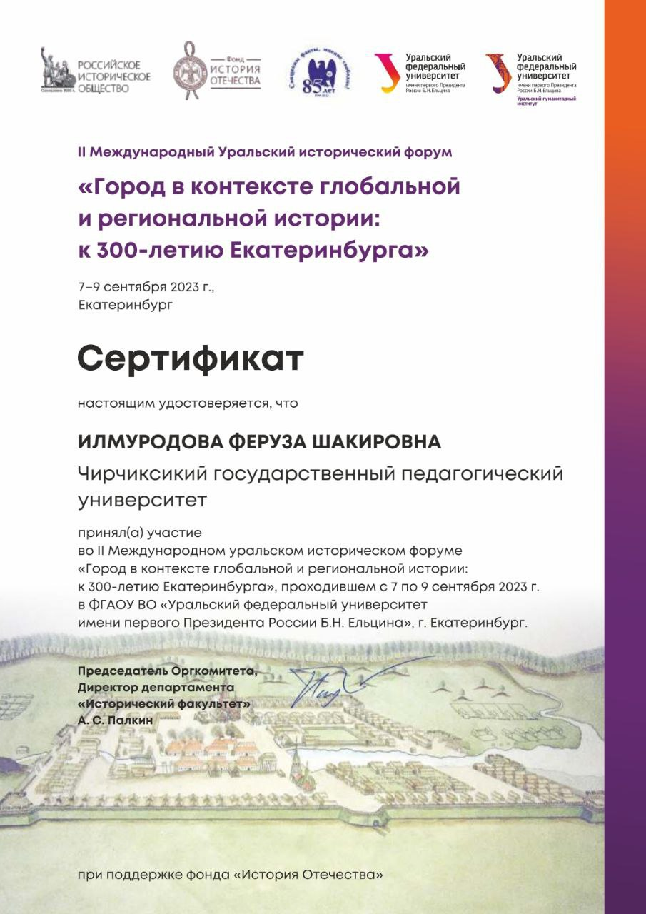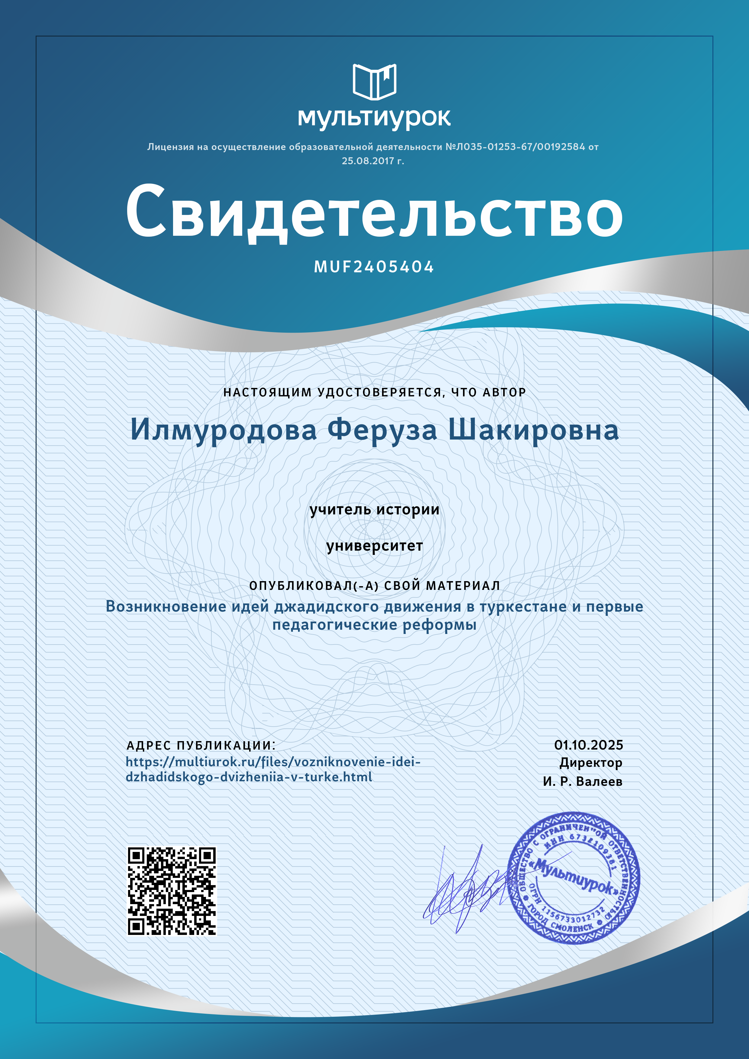 Ilmurodova Feruza Shakirovna is a history teacher specializing in history education and the methodological preparation of future teachers in Uzbekistan
