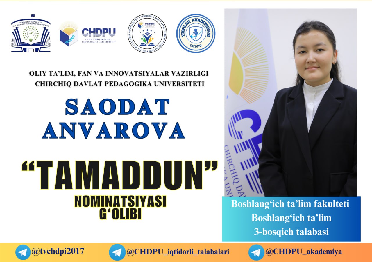 - “Tamaddun nominatsiyasi g‘olibi”;