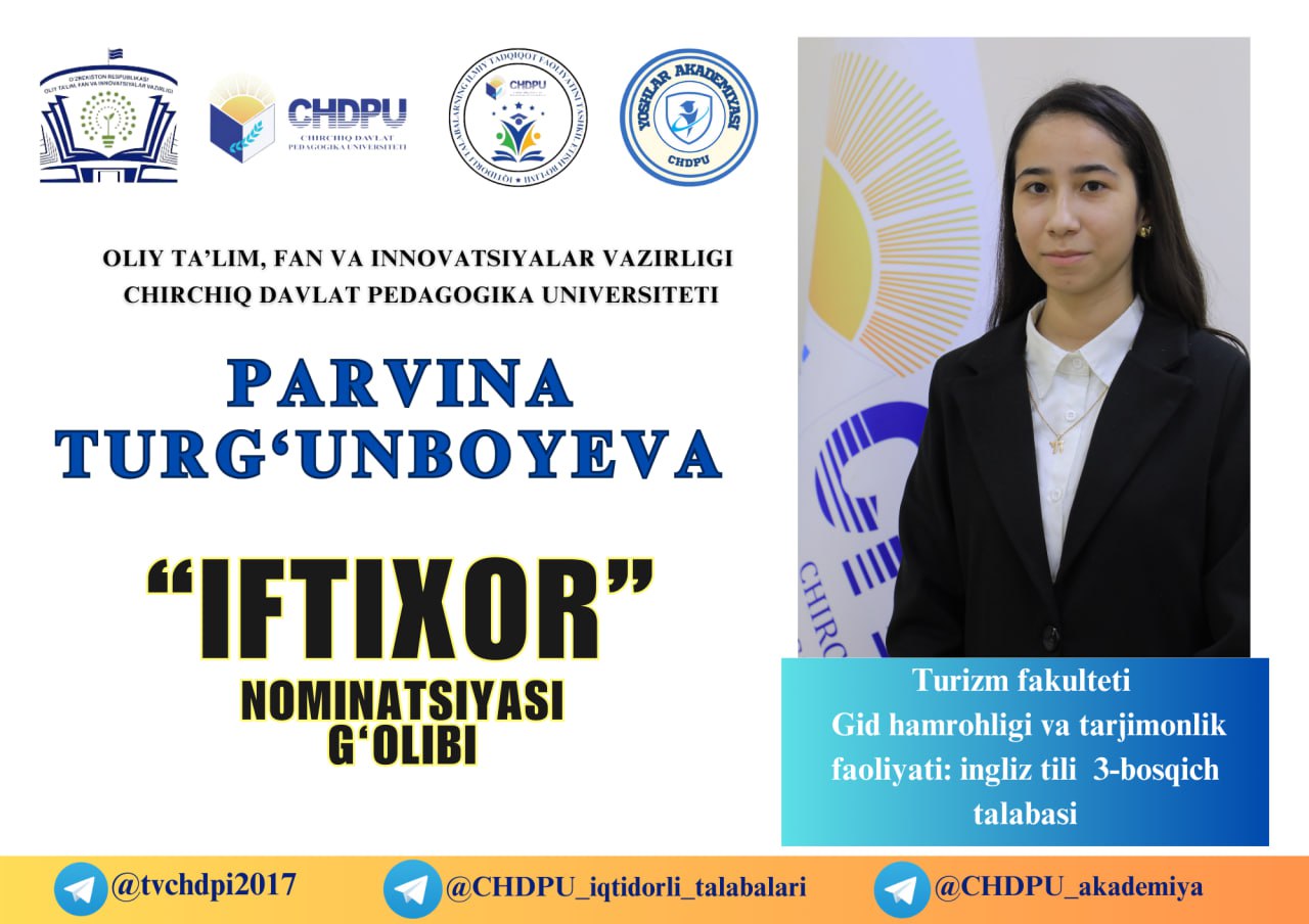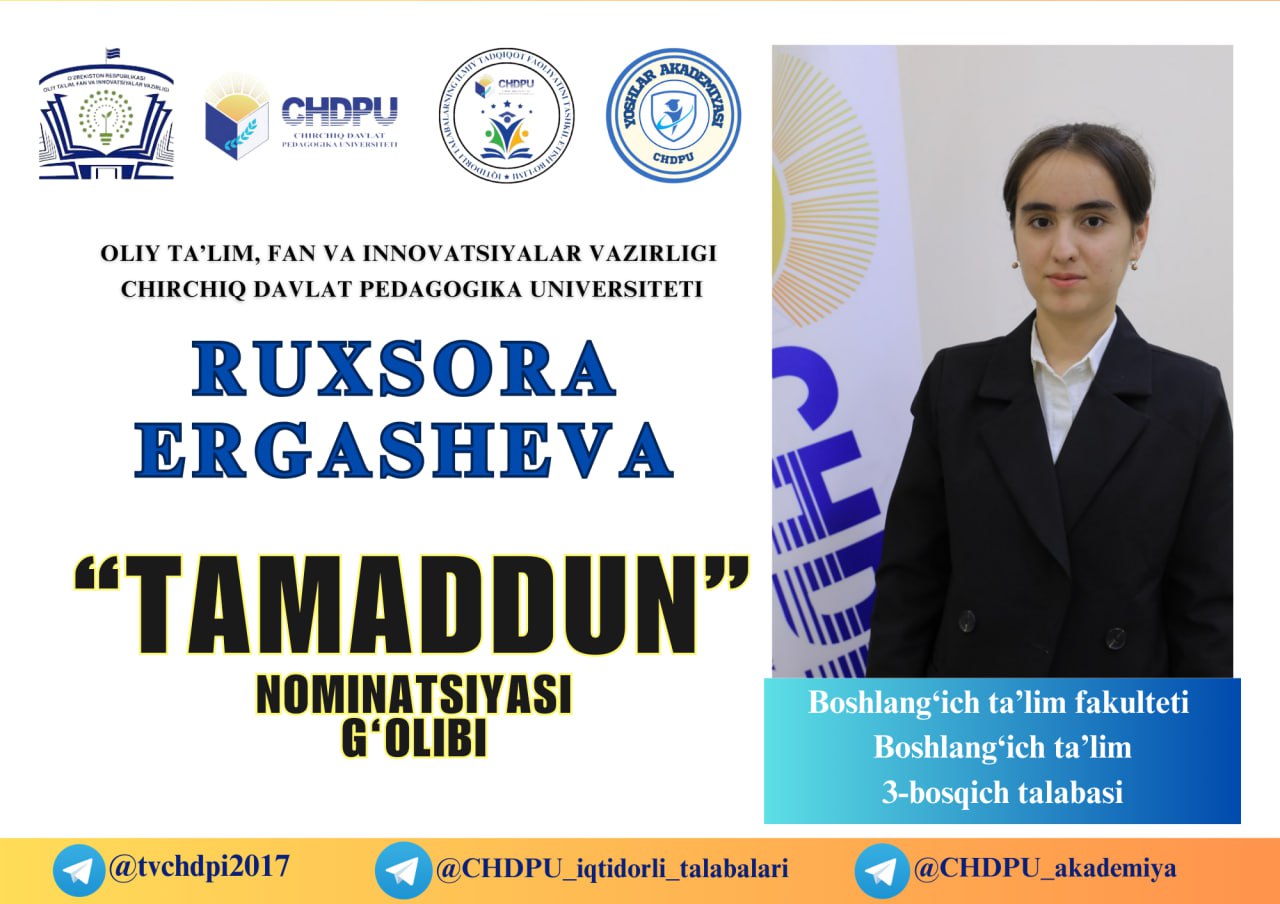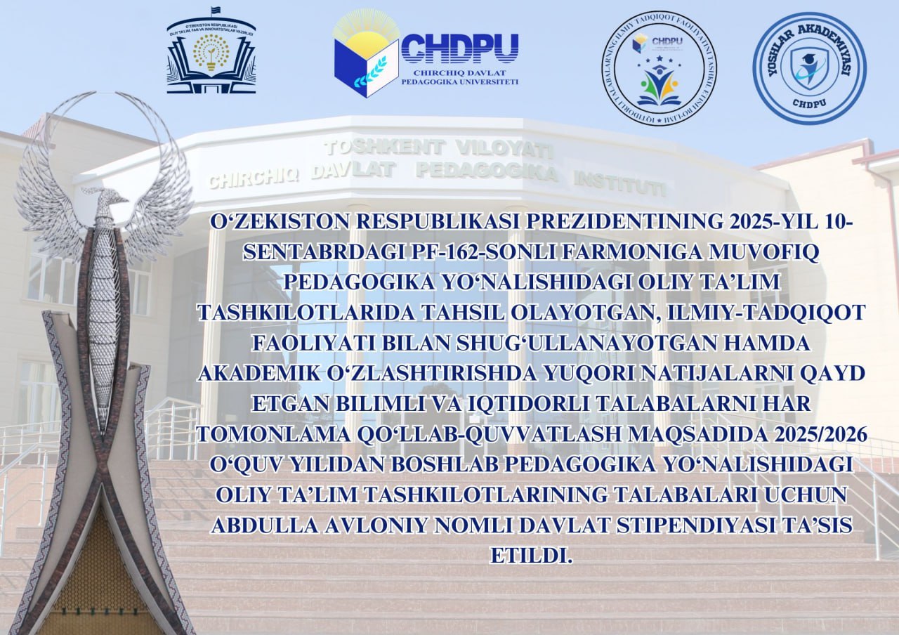 Chirchiq davlat pedagogika universiteti iqtidorli talabalarini qo‘llab-quvvatlash uchun ta’sis qilingan stipendiyalar tanlovining mutaxassislik
