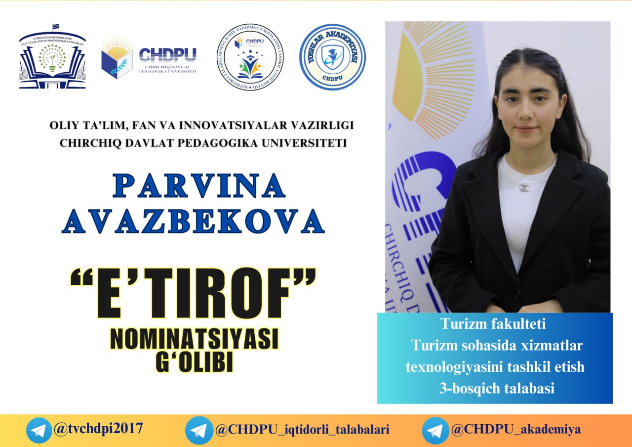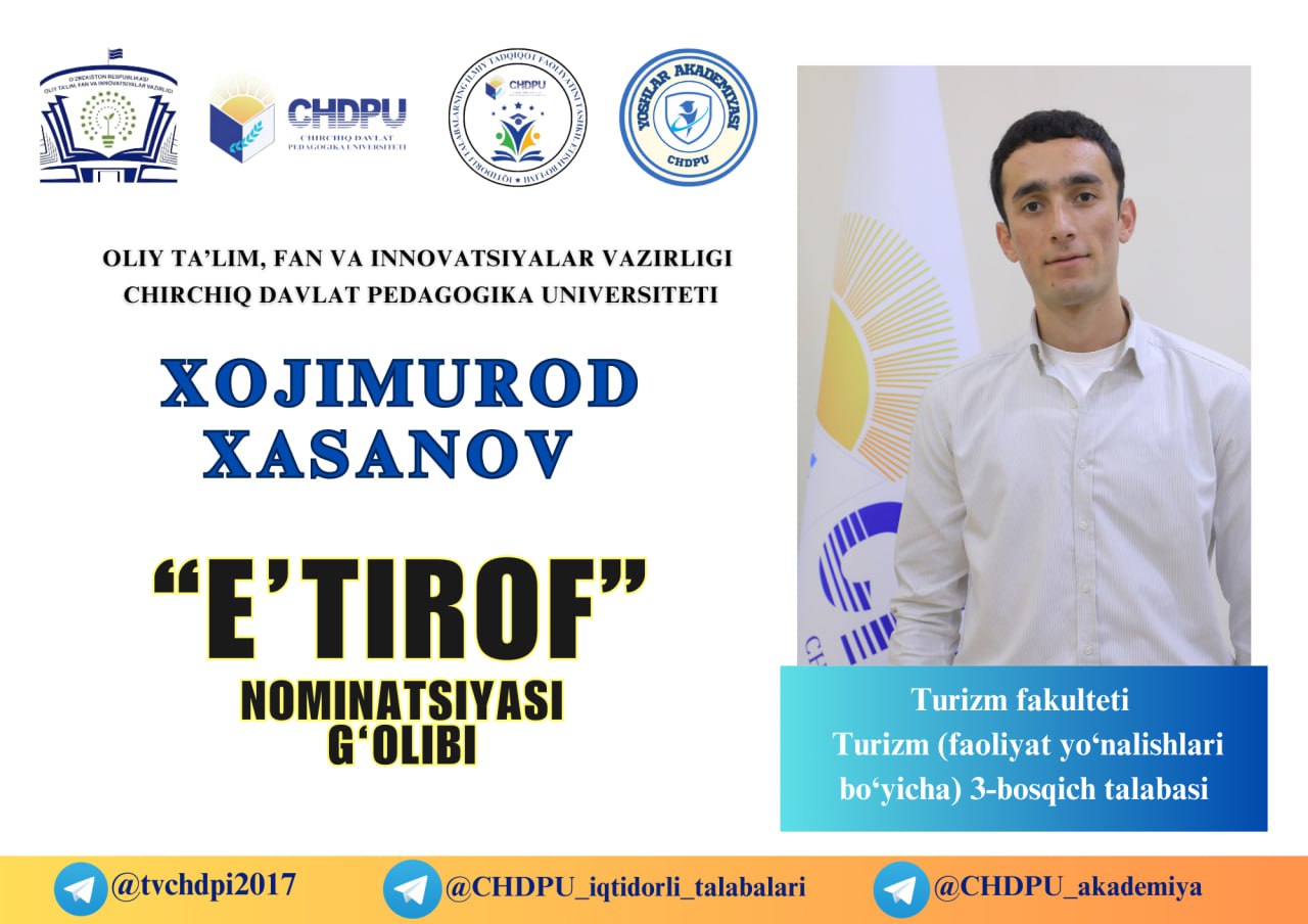 - “E’tirof nominatsiyasi” (amaliy fanlar va turizm yo‘nalishi uchun).