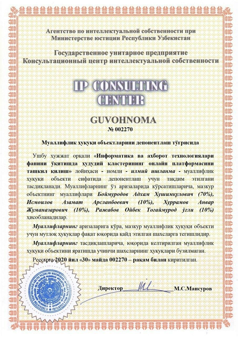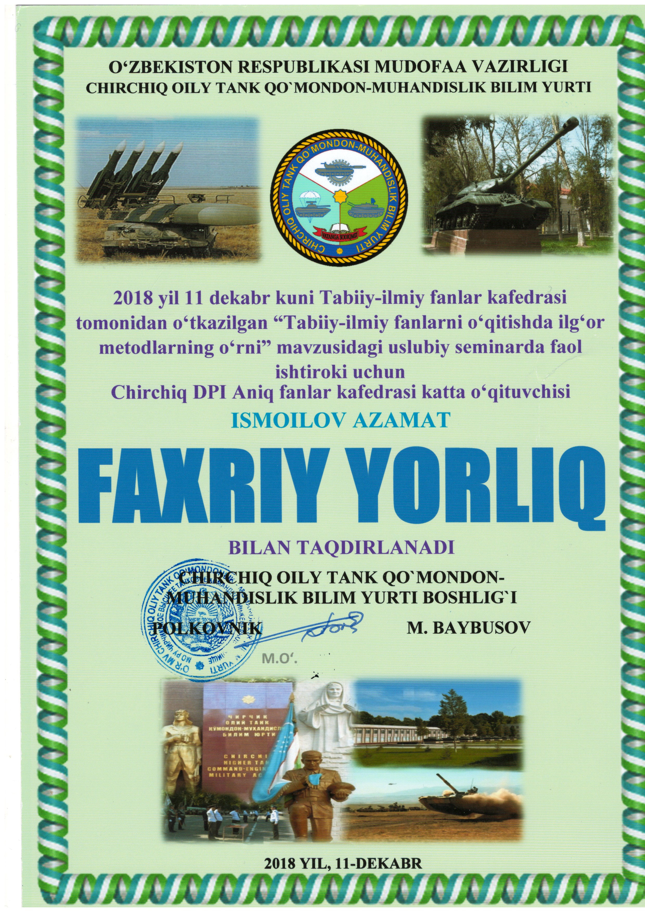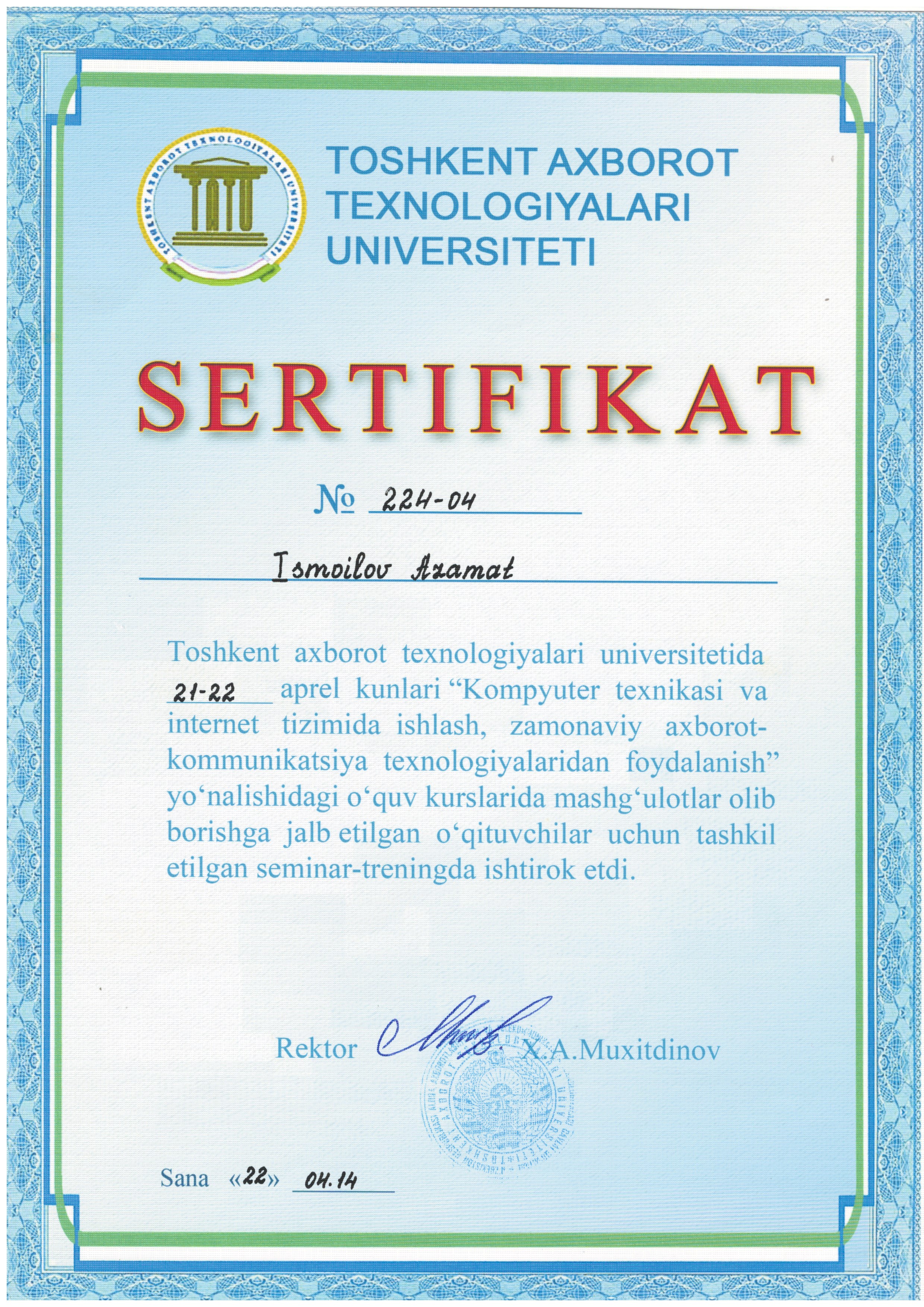 Hurmatli tinglovchilar 10-noyabrgacha to'lovning tegishli qismini amalga oshirganlarga buyruqlarni rasmiylashtiramiz. Undan so'ng buyruq chiqqan tinglovchilar o'qish to'g'risidagi ma'lumotnomalarni olishlaringiz mumkin.
