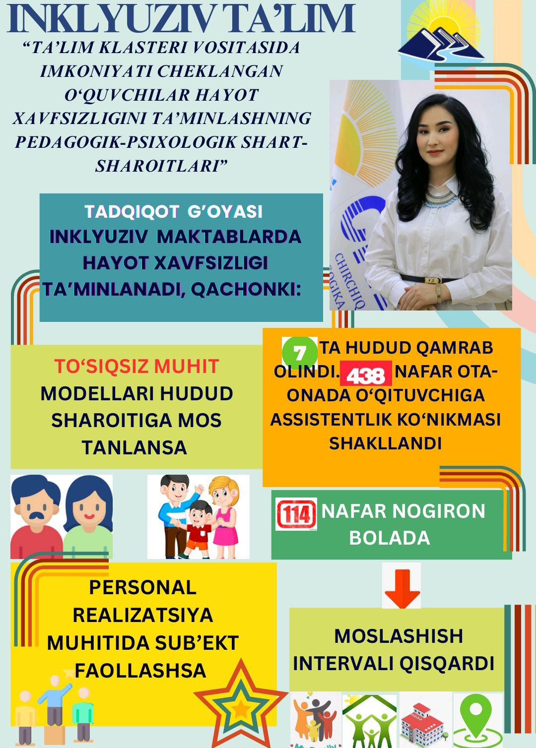 - Pedogogigal psycgologigal aspects of ensuring safe inclusive educational continuity A Journal of teaching theory and practice. ISSN (E): 3061-6964 Volume 01, Issue 06, June 2025 B.-95-104 https://brightmindpublishing.com/index.php/EI/article/view/1076