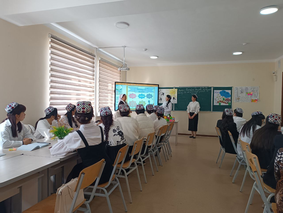 3-kurs talabalari bilan “ kasrlar haqida ma’lumot” mavzusida o‘tkazilgan ochiq darsdan lavhalar.