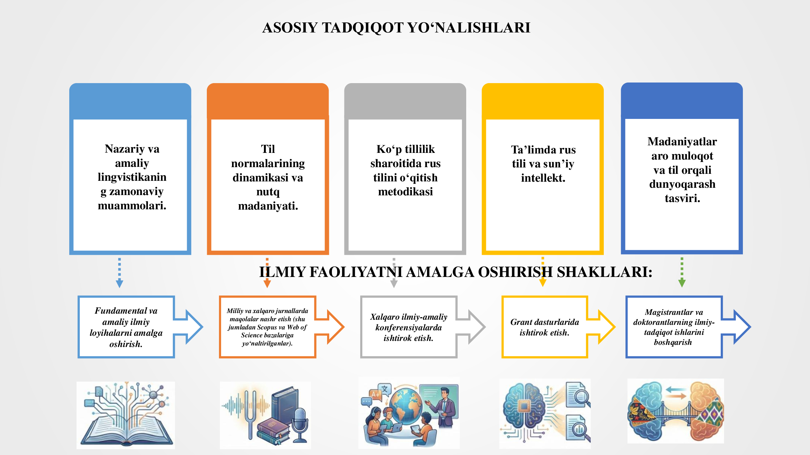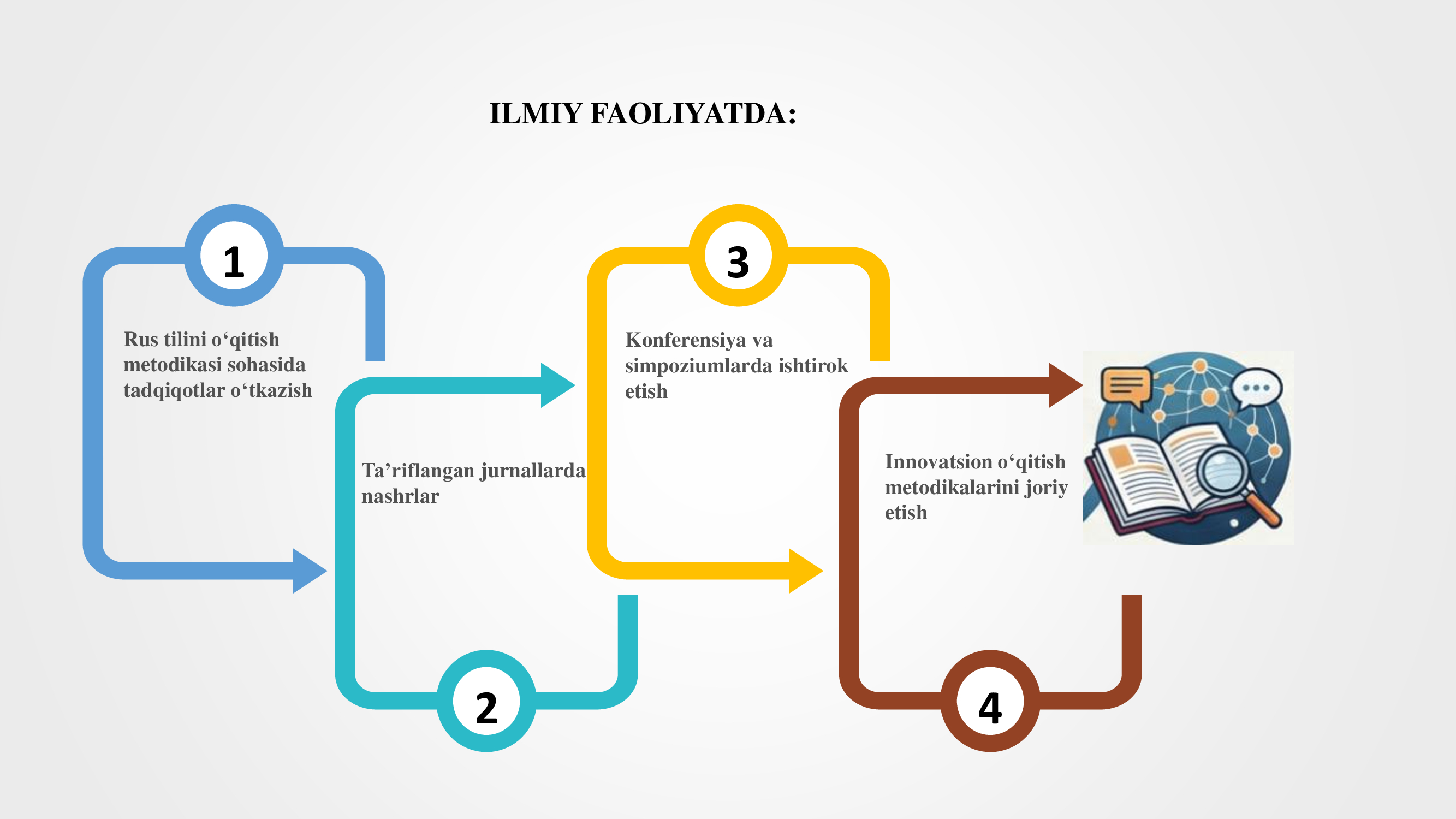 — “RKI (rus tilini chet tili sifatida o‘qitish)ni o‘qitishda madaniyatlararo jihatlar”.