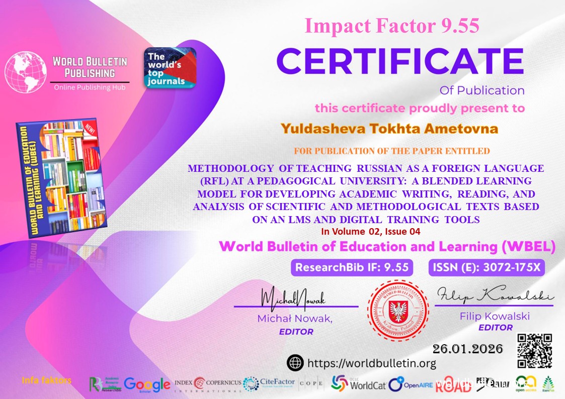 Статья. Oriental Reneaissance: Innovative Educational Natural and Social Sciences. Scientific Journal. ISSN 2181-1784; Volume 1; ISSUE 7; Uzbekistan. (4 бет)