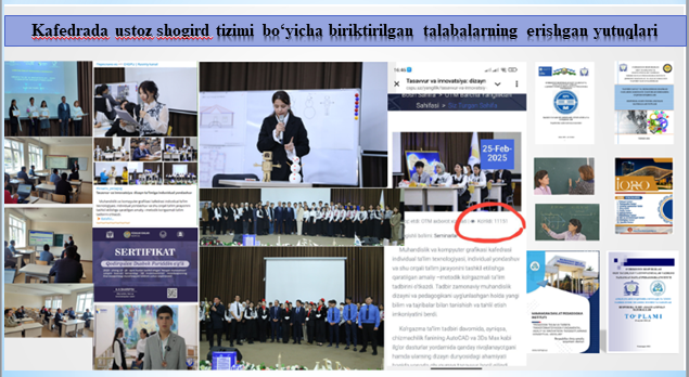 Кафедра инженерной и компьютерной графики, созданная в 2022 году в Чирчикском государственном педагогическом университете, специализируется на подготовке преподавателей по направлениям Изобразительное искусство и инженерная графика, а также специалистов по Дизайну интерьера. Миссия кафедры заключается в интеграции передового образования, науки и инновационных технологий, сфокусированной на обновлении непрерывного педагогического образования в области инженерной графики, расширении международного сотрудничества и развитии инновационной исследовательской среды для современных методик преподавания.