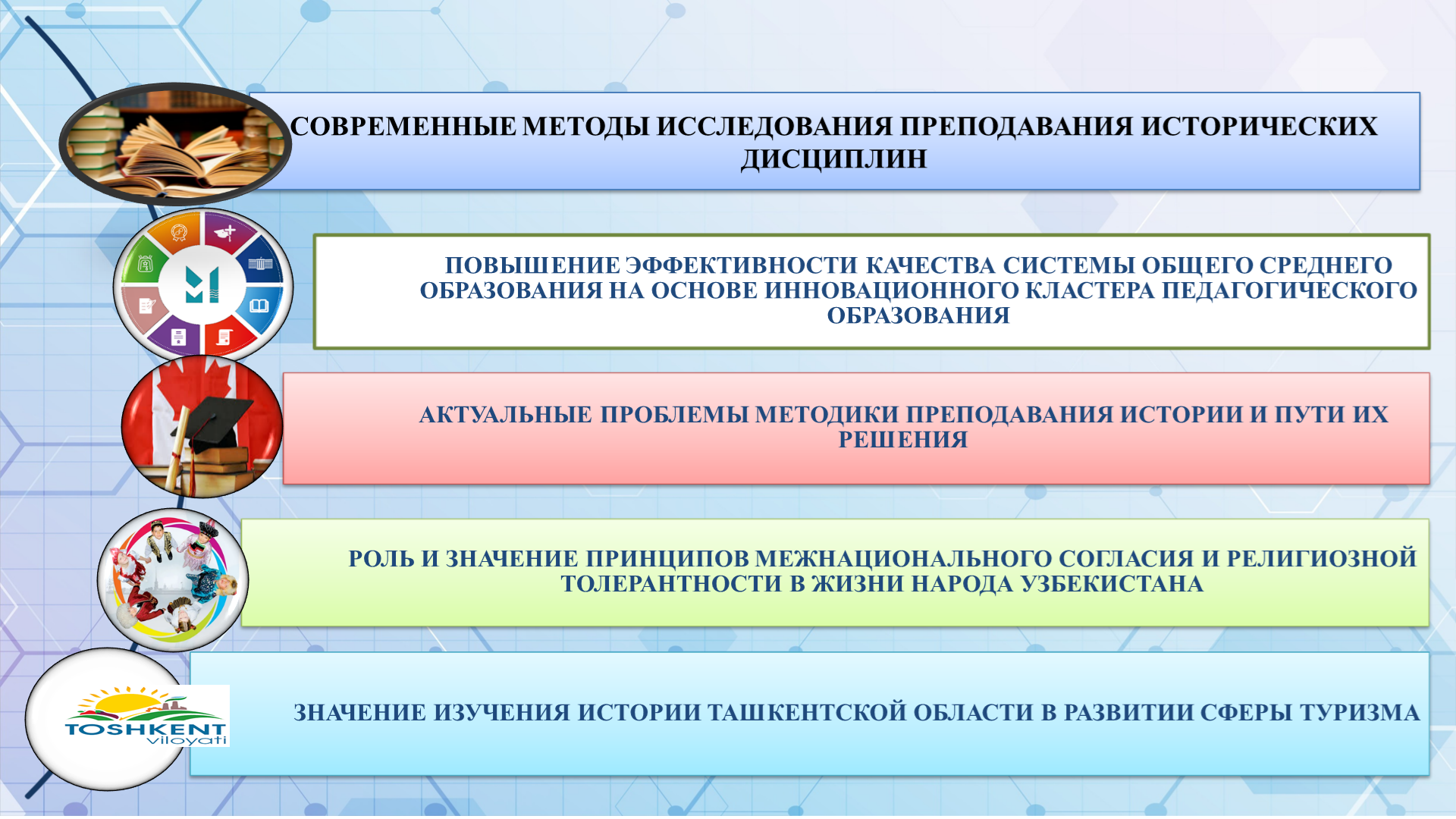 Совершенствование методики преподавания исторических дисциплин на основе педагогического образовательного кластера (С.А. Тоштемирова);