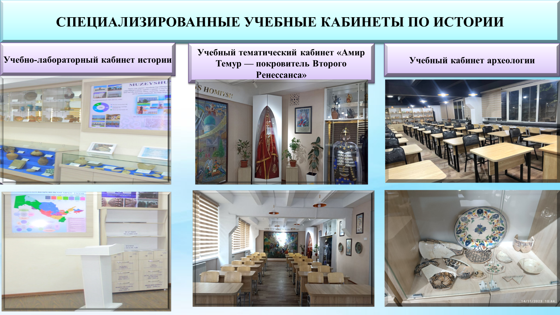 — организованы экскурсии в музеи и историко-археологические памятники. В частности, были проведены экскурсии в музей истории города Чирчика, а также к археологическим памятникам «Ходжакент», «Обирахмат», «Палтау», «Кодовот тепа», расположенным в Бостанлыкском районе Ташкентской области;
