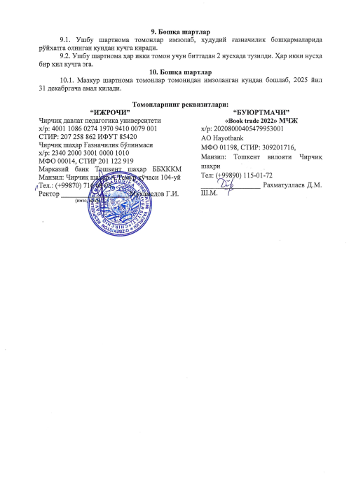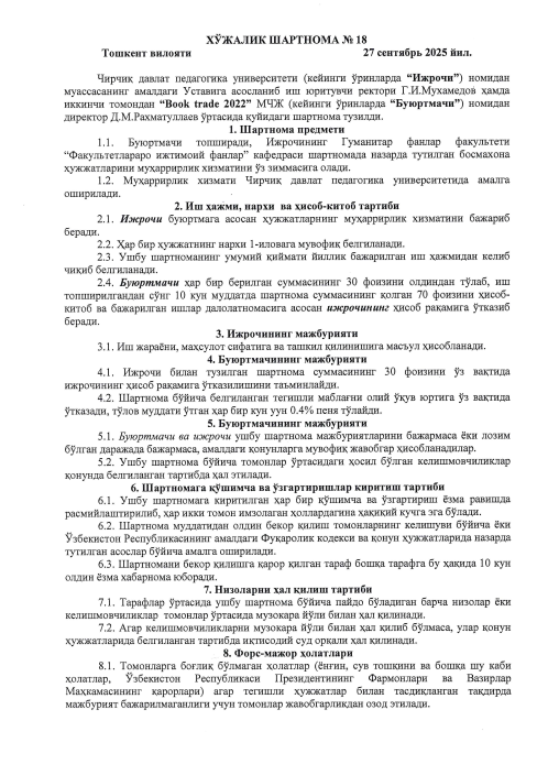 1. Ш.Н. Мирахмедова, «Культурная жизнь в Узбекистане в годы независимости», 24.09.2025. ИНН: 306343716, «Зебо-принт», с. 119.