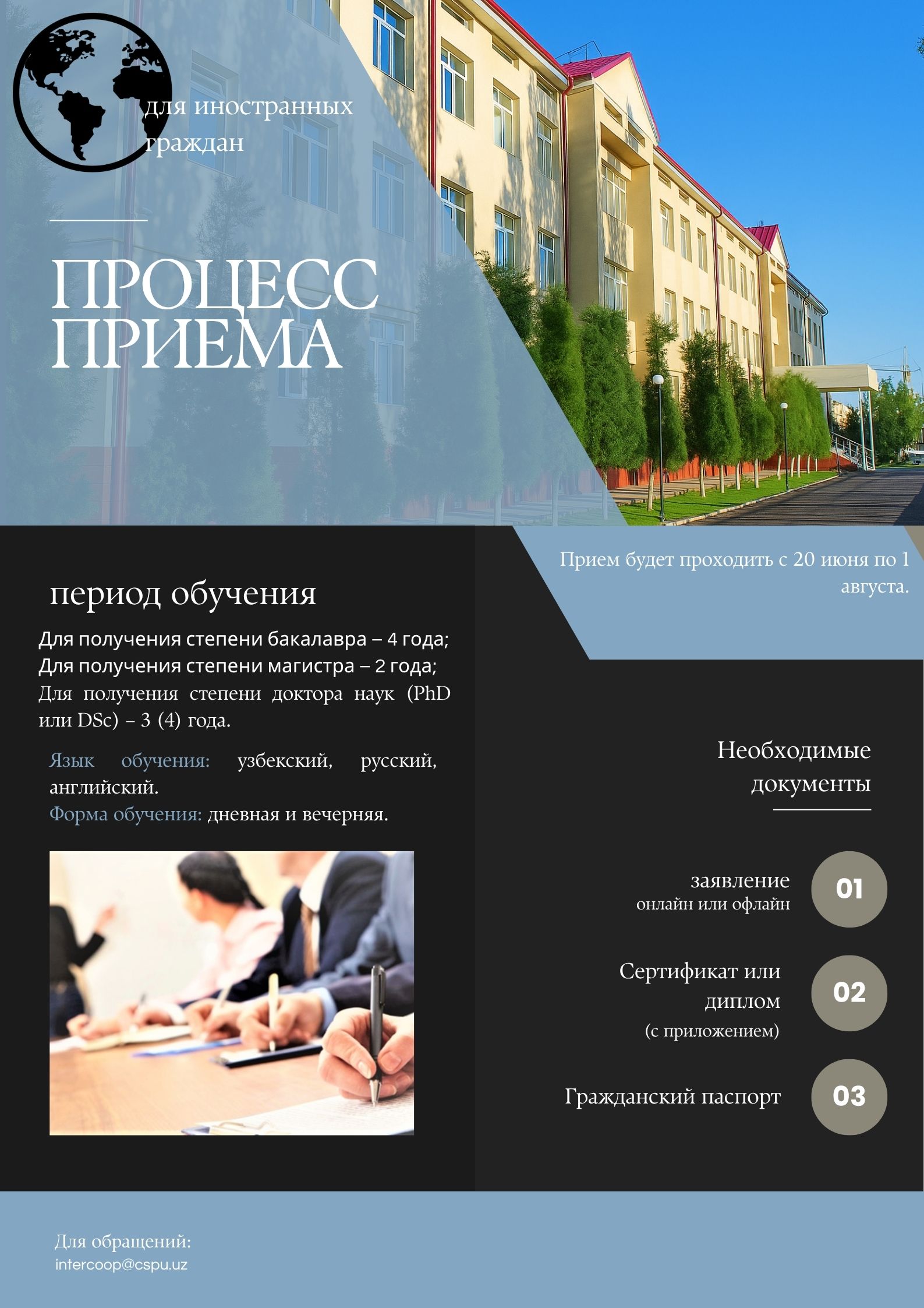 - Email intercoop@cspu.uz