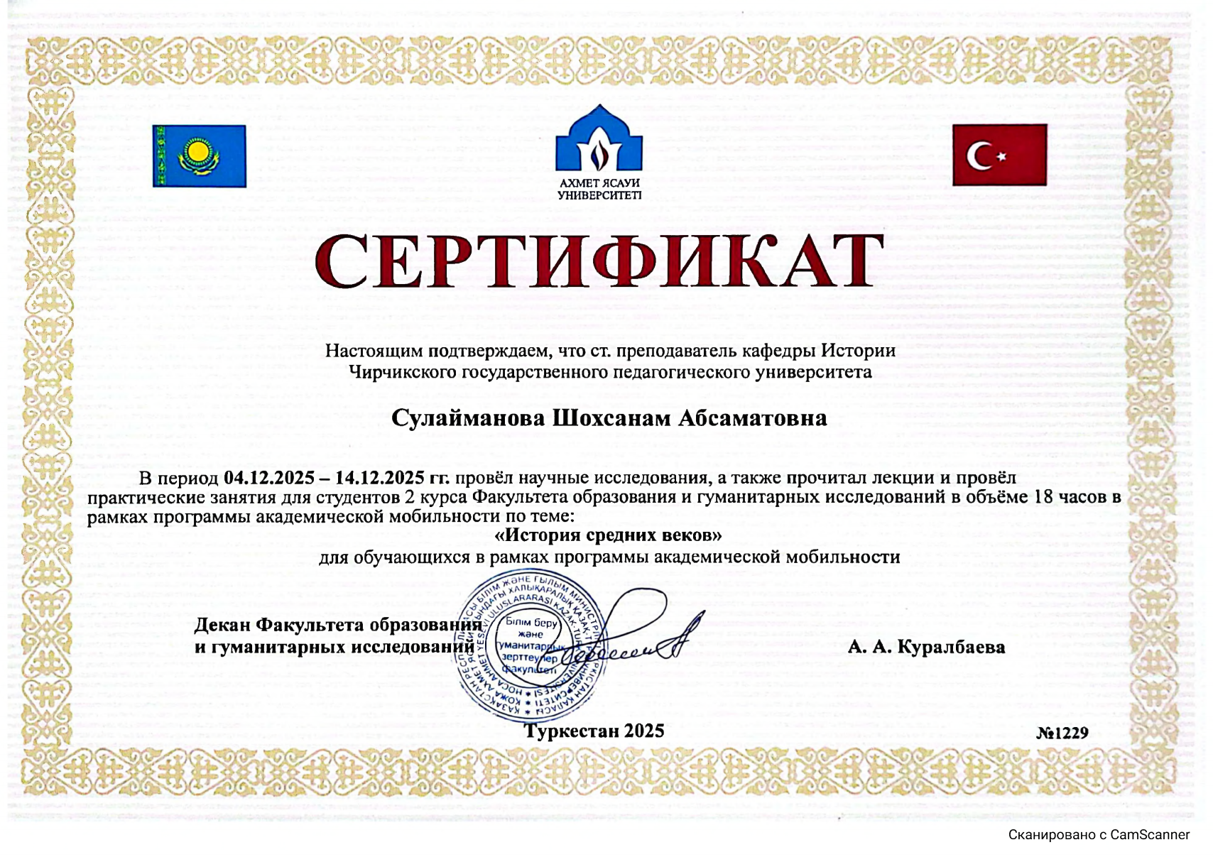 Сулаймонова Шохсанам Абсаматовна