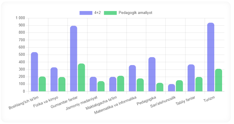 *Ma'lumot uchun izoh: 4+2 Amaliyot: 536 dan 937 gacha; Pedagogik amaliyot: 118 dan 381 gacha.*