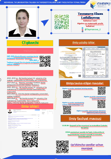 2021-2023 yy.-Chirchiq davlat pedagogika universiteti talabasi (magistr)