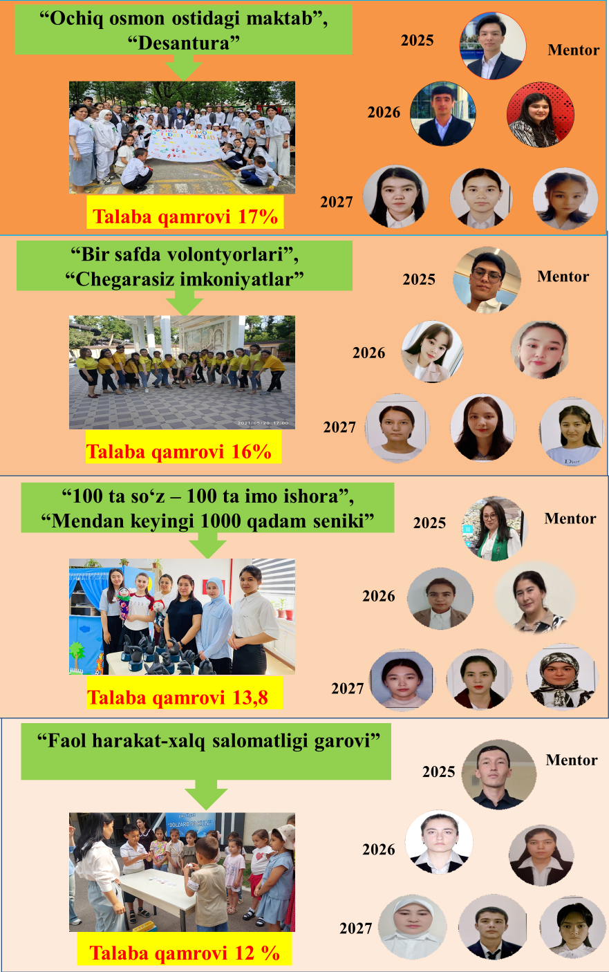 CHDPU Pedagogika fakulteti tashabbusi bilan tashkil etilgan ijtimoiy loyihada talabalar faol ishtirokini ta’minlashdagi pedagogik yondashuv;